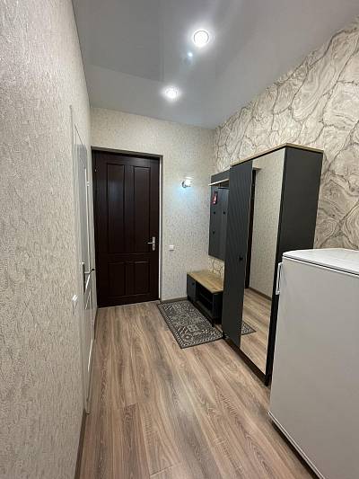 В номере: кровать(1,2 м.), шкаф, стол, тумбочка, стул, набор посуды, телевизор, фен, холодильник, санузел, душ, балкон.
